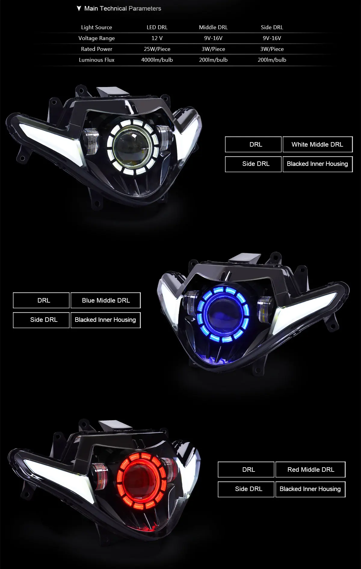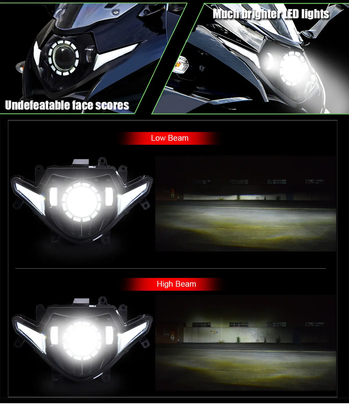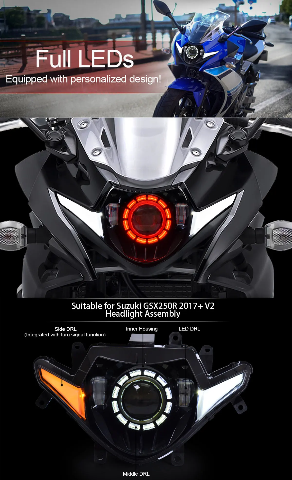 KT Full LED Headlight Assembly for Suzuki GSX250R 2017 Motorcycle Replace Headlamp Lighting Lamp Clear Hi-Low Beam Front Moto