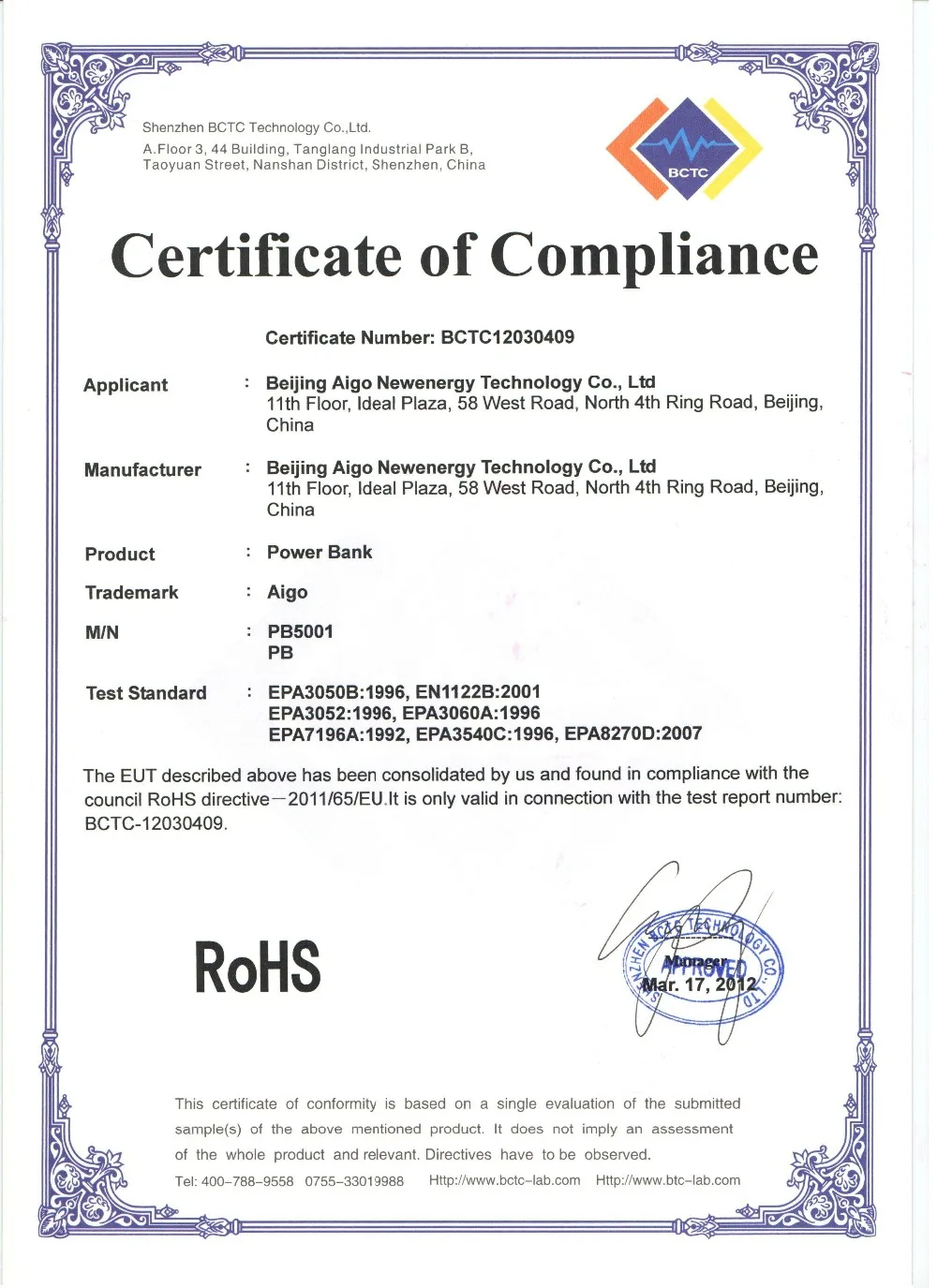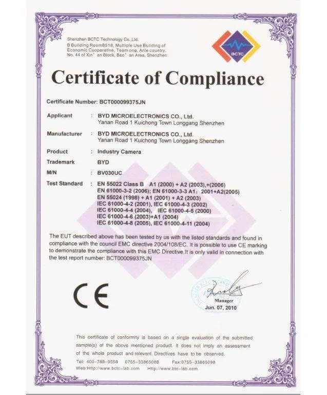 - Certification: CE